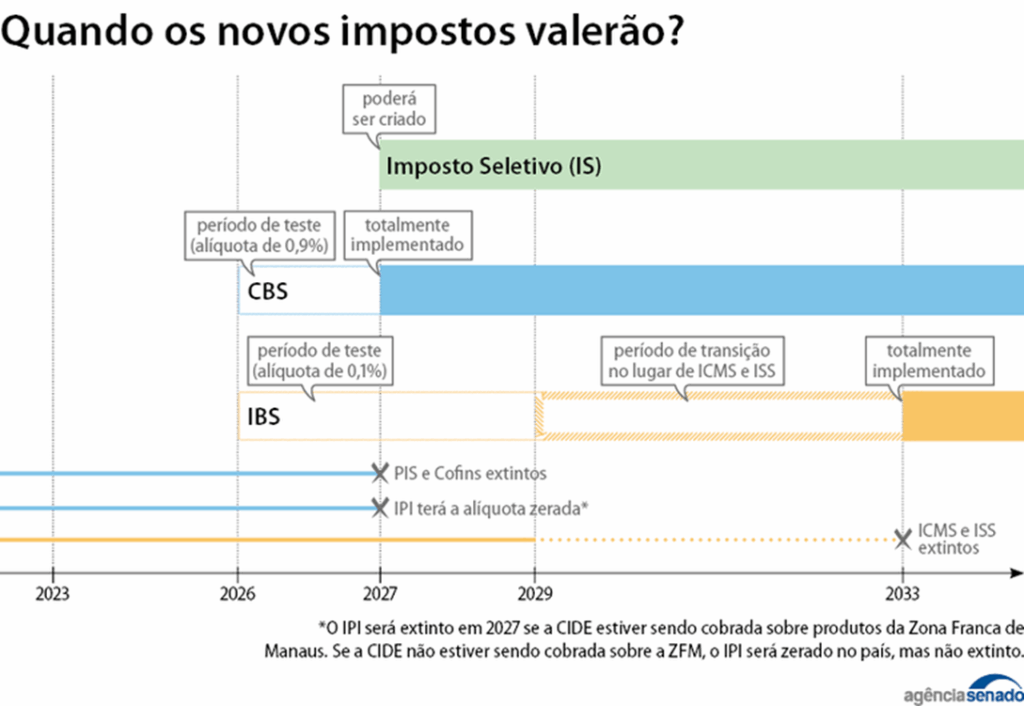 O período de implantação da Nova Reforma ocorrerá entre 2025 e 2033, com a introdução dos novos tributos e a substituição gradual dos impostos atuais. No entanto, muitas decisões estratégicas — que poderão demandar investimentos por parte da organização — precisam ser estruturadas desde já, para viabilizar o aproveitamento das oportunidades que a Reforma Tributária poderá trazer.